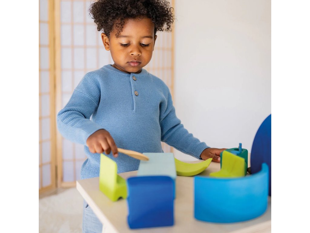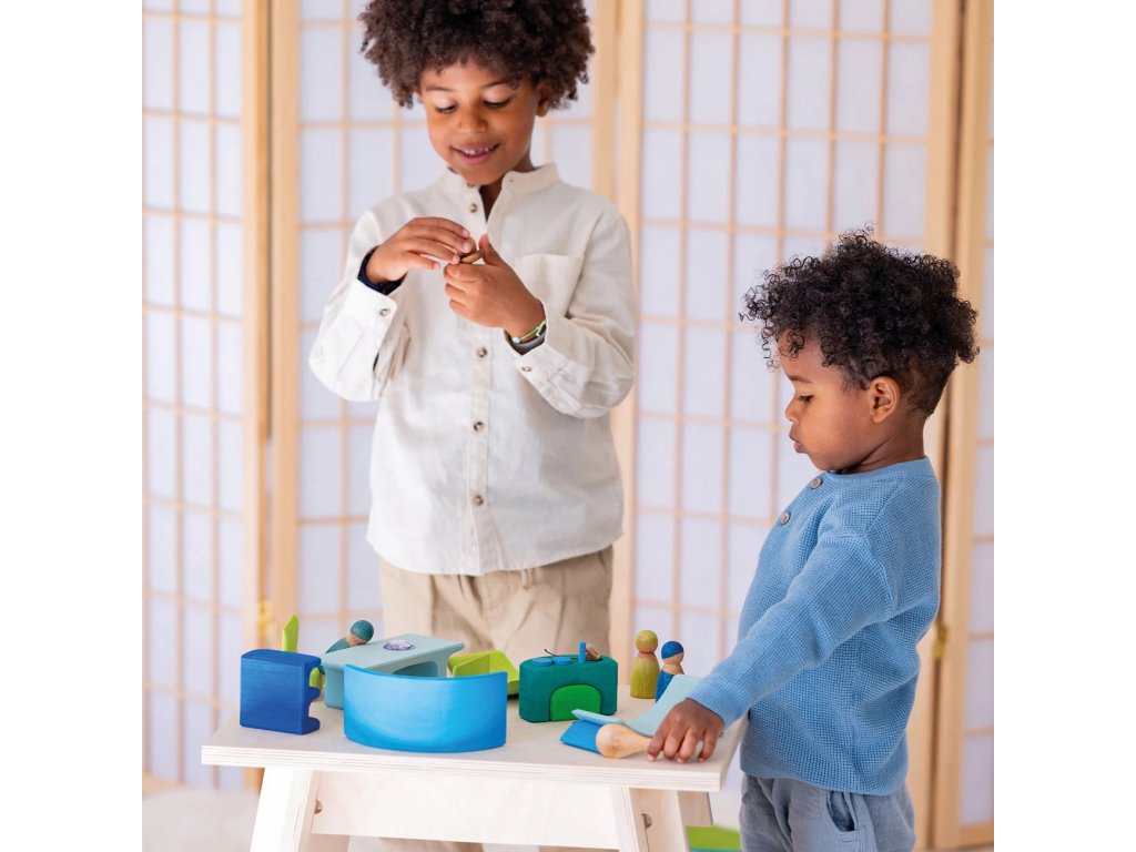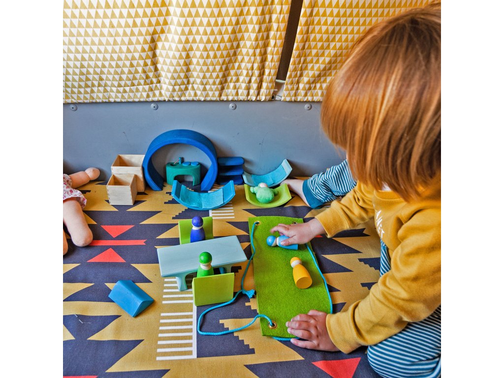Tento přenosný domeček spojuje to nejlepší z Grimms filozofie - přírodní materiály, krásné barvy a nekonečné možnosti pro kreativní hru. Naše rodina si ho oblíbila pro jeho praktičnost a schopnost zaměstnat děti i na cestách.