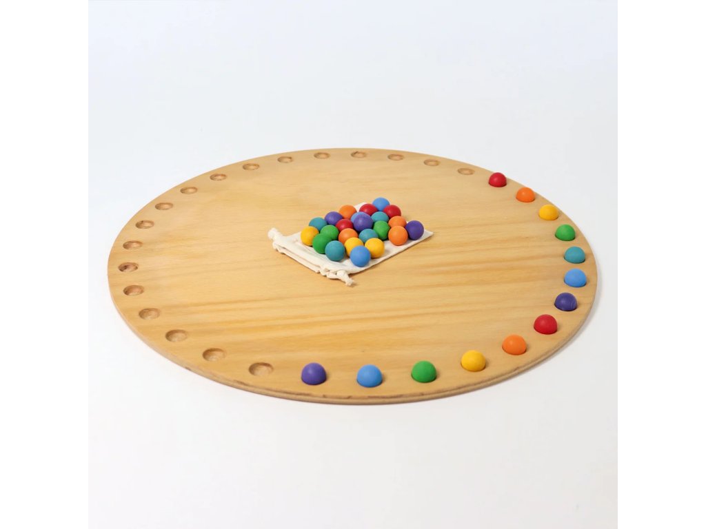 - 1 dřevěný disk s 35 barevnými dřevěnými kuličkami